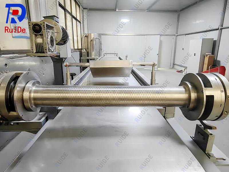 产品描述:熔融的液态硫磺物料,在液硫池内经潜液保温夹套泵和蒸汽夹套管线及过滤器,送入造粒机的滴落机,造粒机的滴落机将熔融液态硫磺物料成液滴状一排一排地喷洒在运行着的冷却钢带上,冷却钢带下方喷有冷却水,钢带上方硫磺液滴经过冷却,固化成扁半球状颗粒,由卸料刮刀刮下,流入下料斗进入包装机料仓。颗粒直径约3-6mm,高度约1.5-1.8mm,整机宽度有:1200mm、1600mm、1800mm和2100mm,整机长度有13m,单机产量有1500kg/h、3000kg/h、4000kg/h和6000kg/h,可配半身动或全自动包装机,完成自动包装码垛。