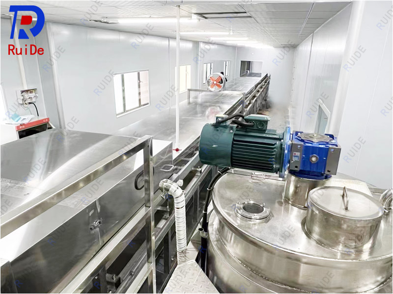 案例描述:是利用物料的低熔点特性(50℃—300℃),将熔化的物料通过特殊的布料装置—布料器,均布到下方匀速移动的钢带上,利用钢 带下方的冷却装置,使物料冷凝、固话、达到造粒目的。